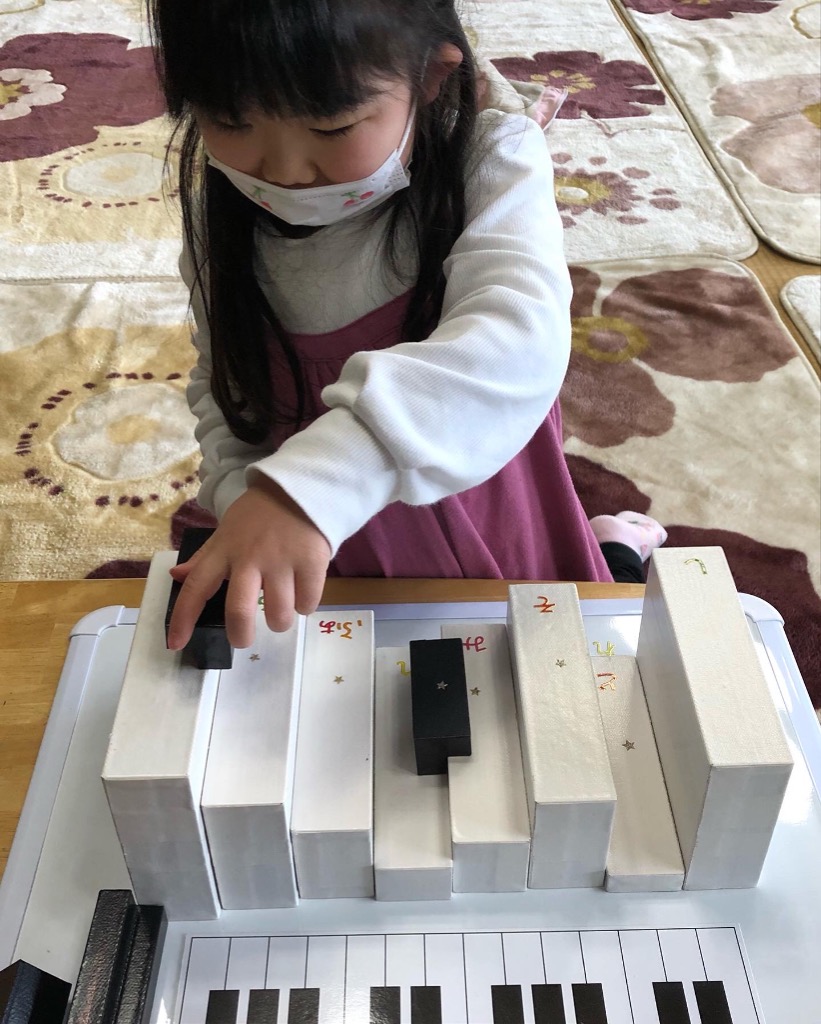 当教室の体験レッスンでは、どれみの階段を使って遊び感覚で楽しんでいます。