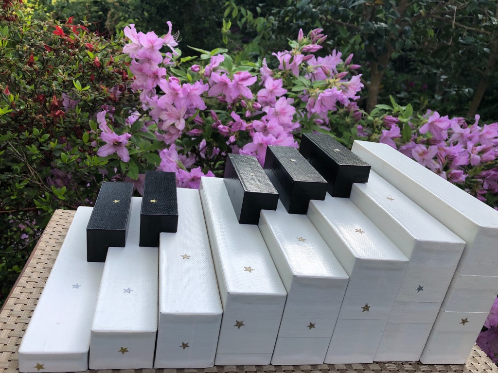 どれみの階段Mサイズは、ミニ鉄琴を置いたら音が出るどれみの階段に変身します