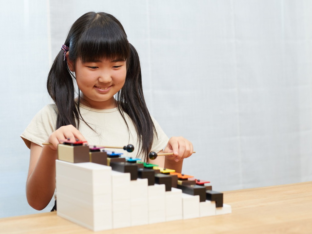 一瞬でドレミが分かる、遊んで学べる魔法の積み木、みんなで楽しむ『どれみの階段』。